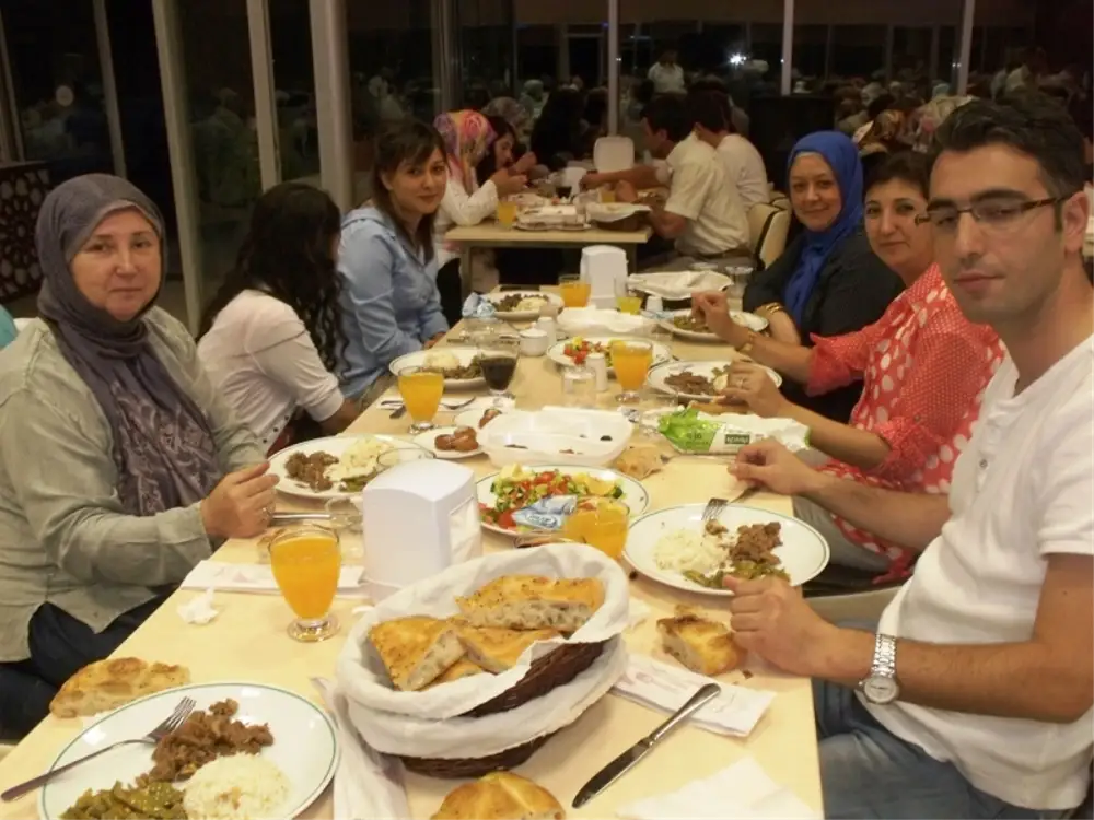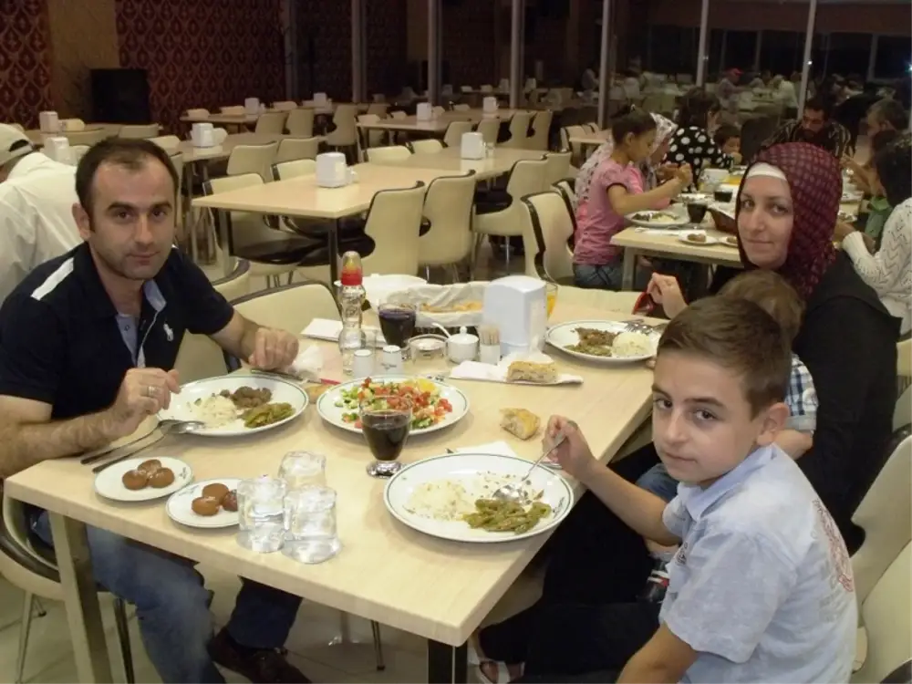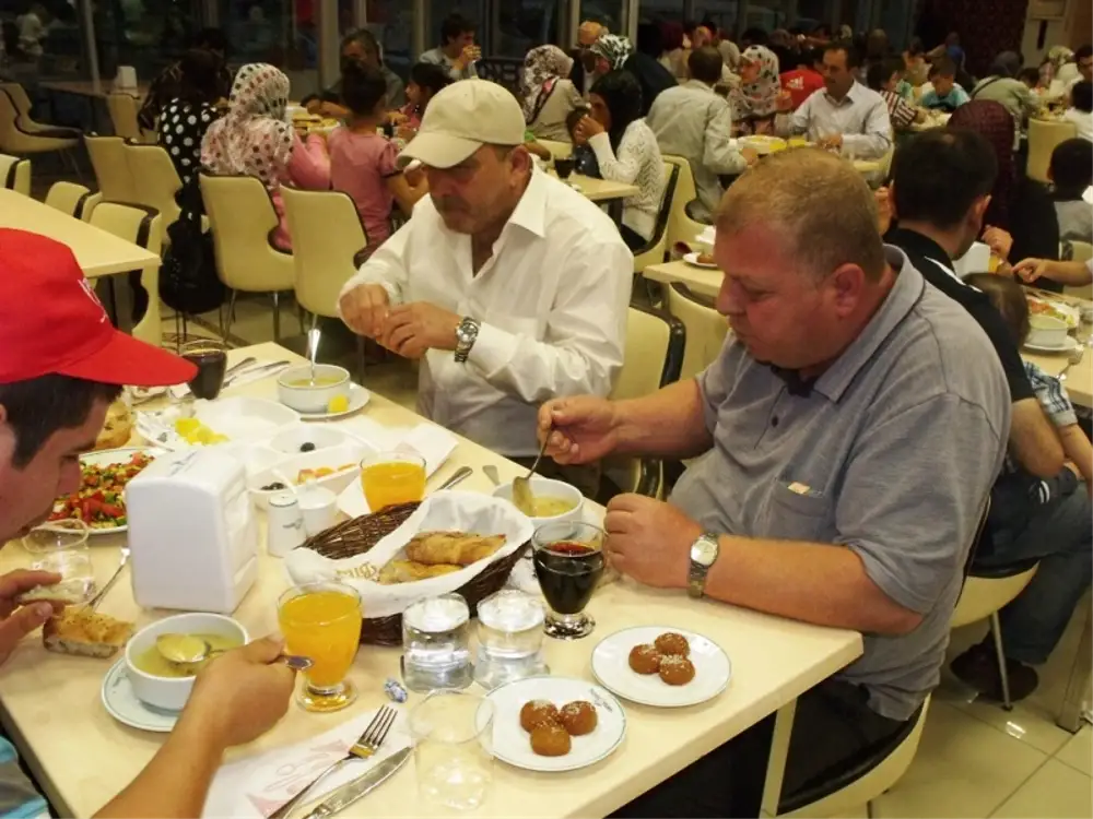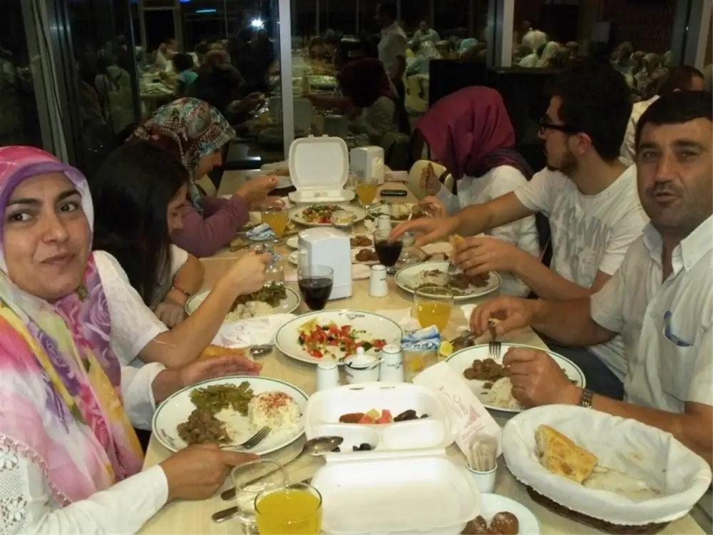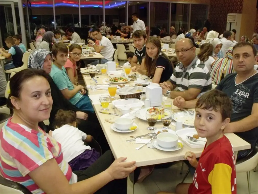 Başkan Özkaraman iftar öncesi masaları tek tek dolaşarak tüm davetli ve personel ve ailelerin Ramazanlarını kutladı.