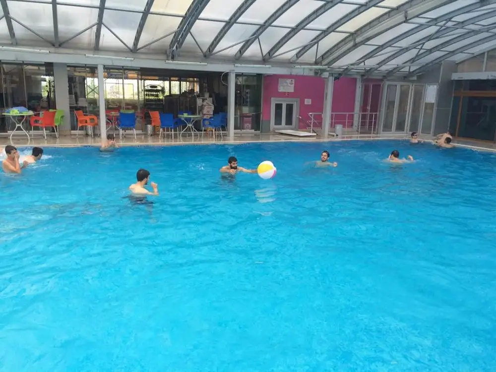 Aile velilerinin izni ile gerçekleştirilen program kapsamında kiralanan yüzme havuzunda, yüzme bilmeyen çocuklara büyükler tarafından yüzme egzersizleri yaptırıldı.