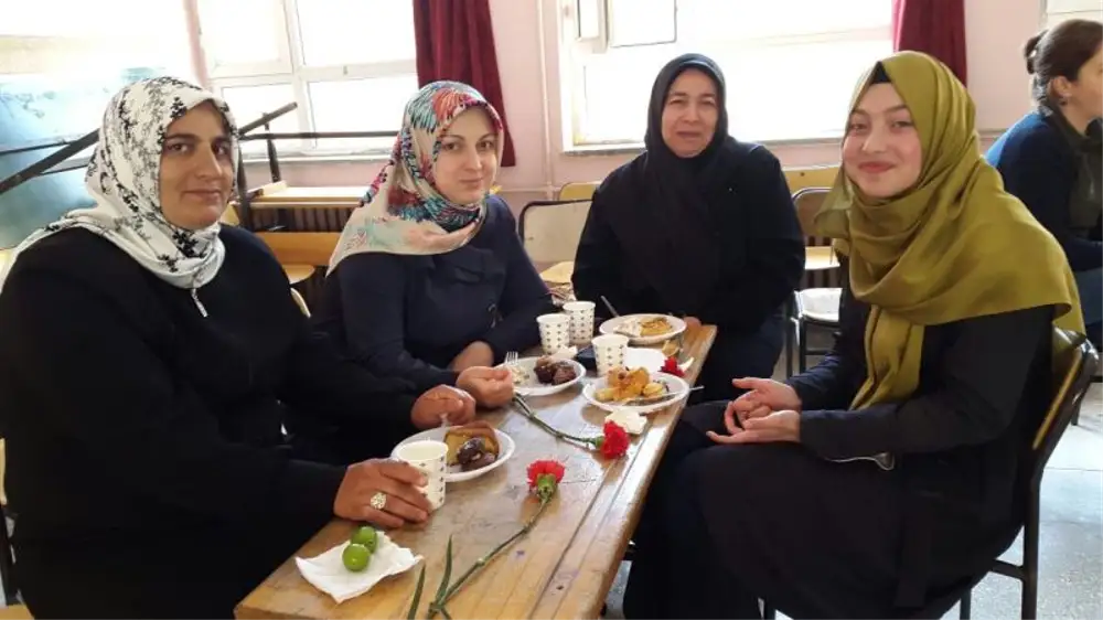 Taraklı Ortaokulu müdürlüğü tarafından hediye edilen karanfillerin annelere dağıtılmasının ardından, öğretmenler anneler ve çocuklar birlikte hazırladıkları ikramlar eşliğinde sohbet ettiler.
