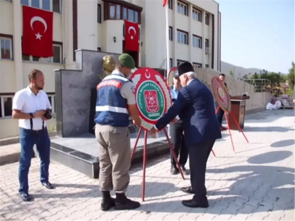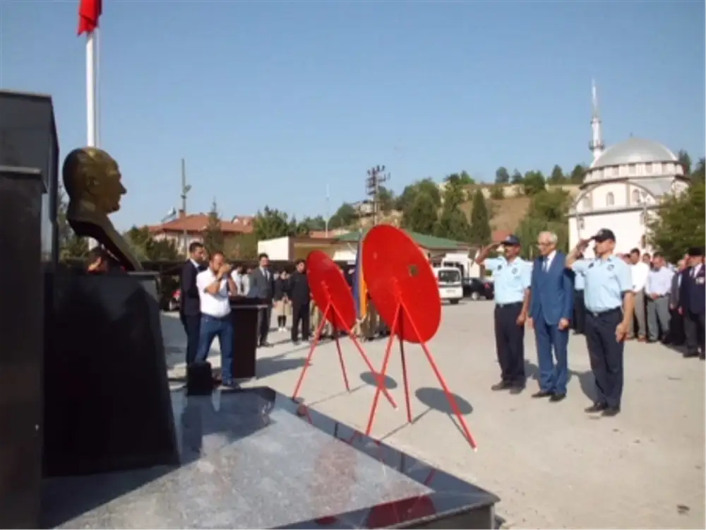 Hükümet Konağı bahçesinde Atatürk Anıtına çelenk konulması ile başlayan törene Kaymakam Cihat Koç, Belediye Başkanı Tacettin Özkaraman,İlçe Jandarma Komutan V.Kd Üst.Çvş.Serdar Demir,İlçe Emniyet Amiri Cem Çiftçi,AK Parti İlçe Başkanı Erdal Özen ,CHP İlçe Başkanı Kadir Güneş,SP İlçe Başkanı İsmail Güven,daire müdürleri, öğretmen ve öğrenciler katıldı.