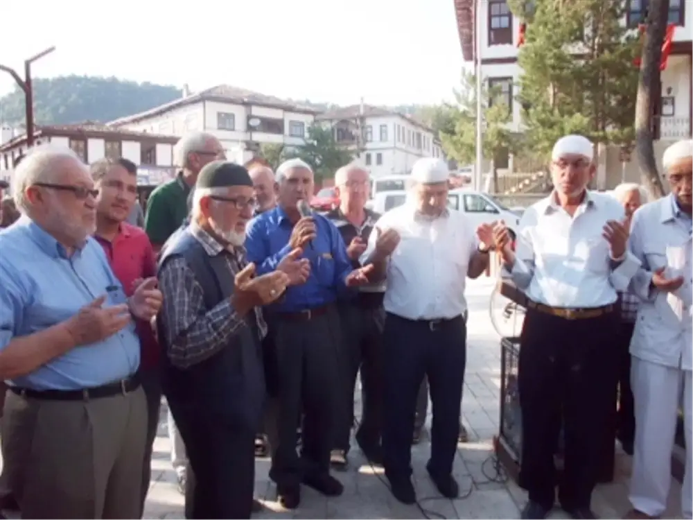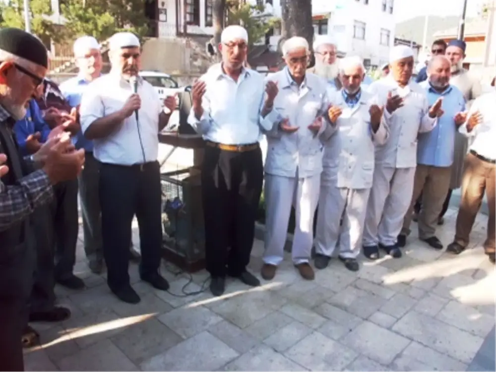 Şehit Mehmet Nuri Kocabıyık Meydanında düzenlenen uğurlamada İlçe Müftülüğü Din Görevlileri tarafından hacı adayları için okunan Kur'an-ı Kerim ve dualar yapıldı