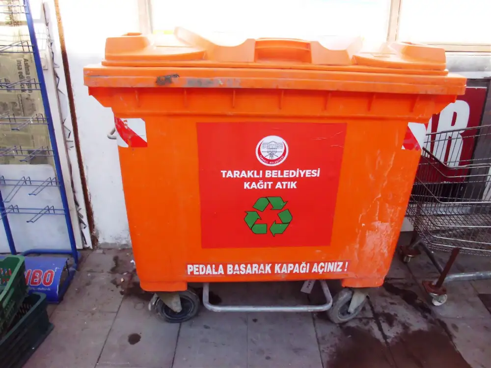 Turuncu renkli konteynırlar evsel atıklar için değil, geri dönüşümü mümkün olan kağıt, karton, cam, metal, plastik ve naylon atıkları için olduğu belirtildi..