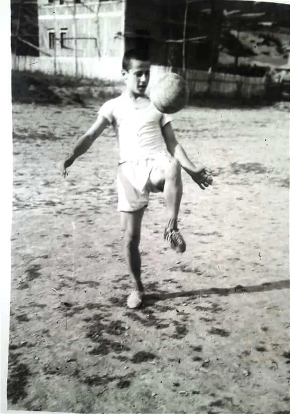 Fotoğrafa dikkatli bakınca futbolcu Mithat Kaynar’ın öncelikle sağ ayağındaki ayakkabısı ile sol ayağındaki ayakkabı farklı. Futbolcunun üzerinde forma yerine fanila var. Saha ise balçık içerisinde…Duygulanmamak mümkün değil