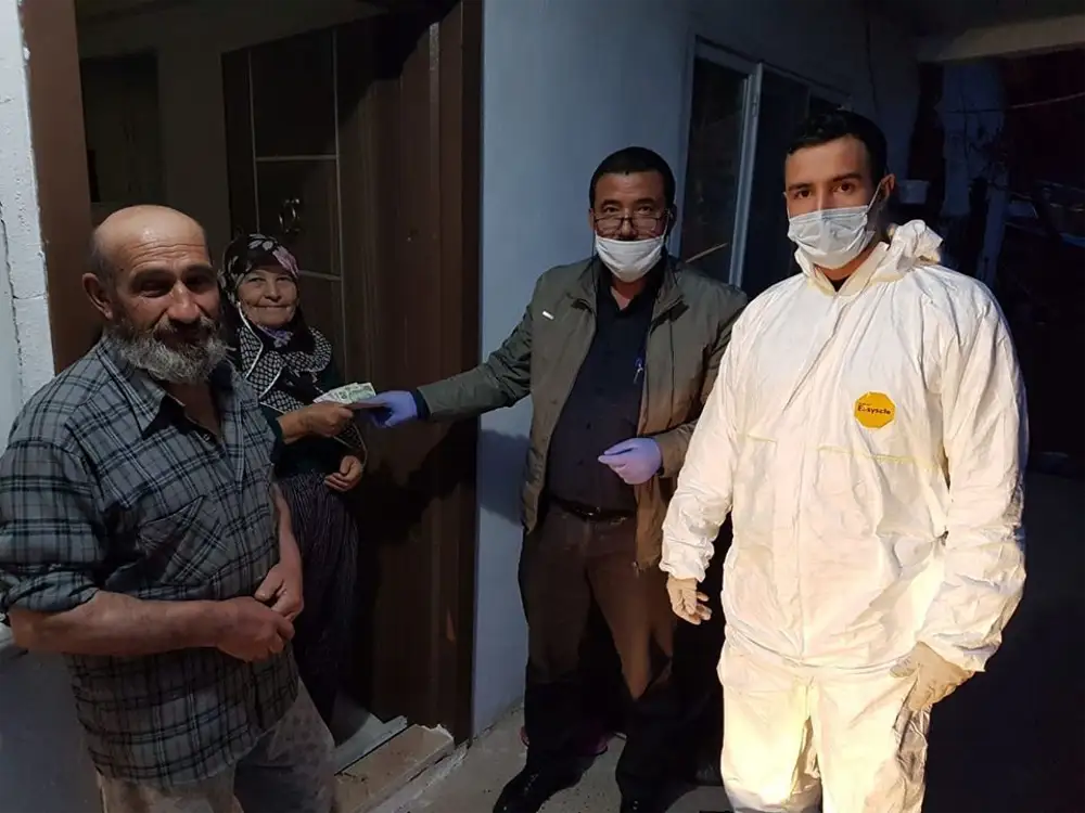 Taraklı’da yeni tip korona virüsle (Kovid-19) mücadele kapsamında sokağa çıkmaları sınırlandırılan 65 yaş üstü ve kronik rahatsızlığı bulunan vatandaşların maaşları ve Ekonomik İstikrar Kalkanı Paketi Destek Programı çerçevesinde "Düzenli Merkezi Yardım" alan vatandaşlarımızın 1.000 TL'lik ödemeleri, Vefa Sosyal Destek Grubu ekiplerince evlerine götürülüyor.