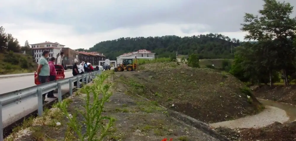 Gök gürültüsü ve şiddetli yağış sonrası Taraklı Aksu deresinde meydana gelebilecek sel tehlikesine karşı vatandaşlar panik yaşadı