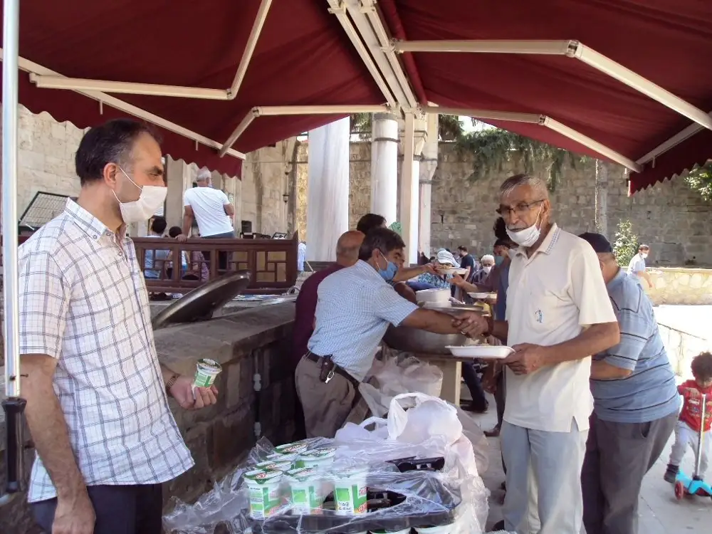 Tüm şehitlerimiz ile gazilerimiz için öğle namazından önce mevlit okunmasından sonra namaz çıkışında cemaate pilav ayran ve tatlı ikram edildi