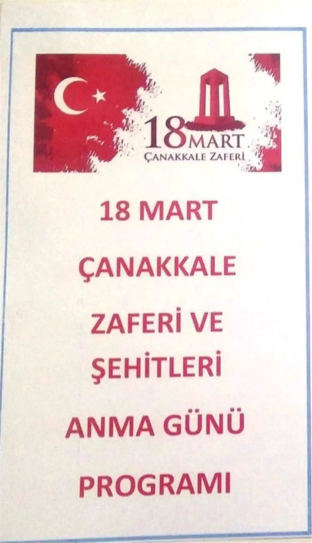 18 MART ÇANAKKALE ZAFERİ VE ŞEHİTLERİ ANMA GÜNÜ PROGRAMI
