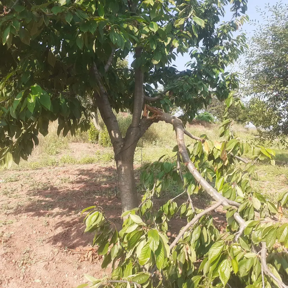 Recai Çınar’a ait bahçede, ağaçların dalları kırıldı.