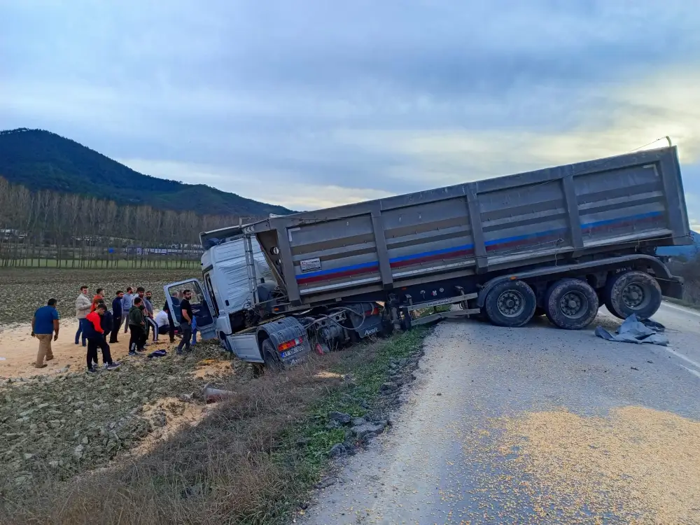 Mısır yüklü tır şarampole girdi