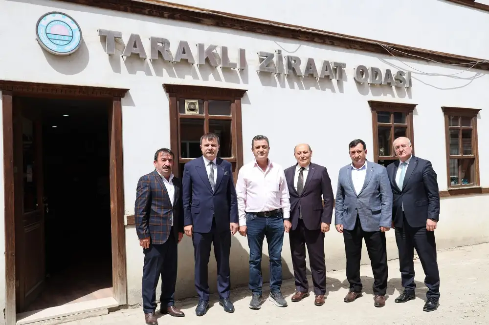 Sakarya Ticaret Borsası yönetim Kurulu Başkanı Mustafa Genç ve Meclis Başkanı Bekir Uztürkile yönetim kurulu üyeleri, Taraklı Ziraat Odası'nı ziyaret etti.