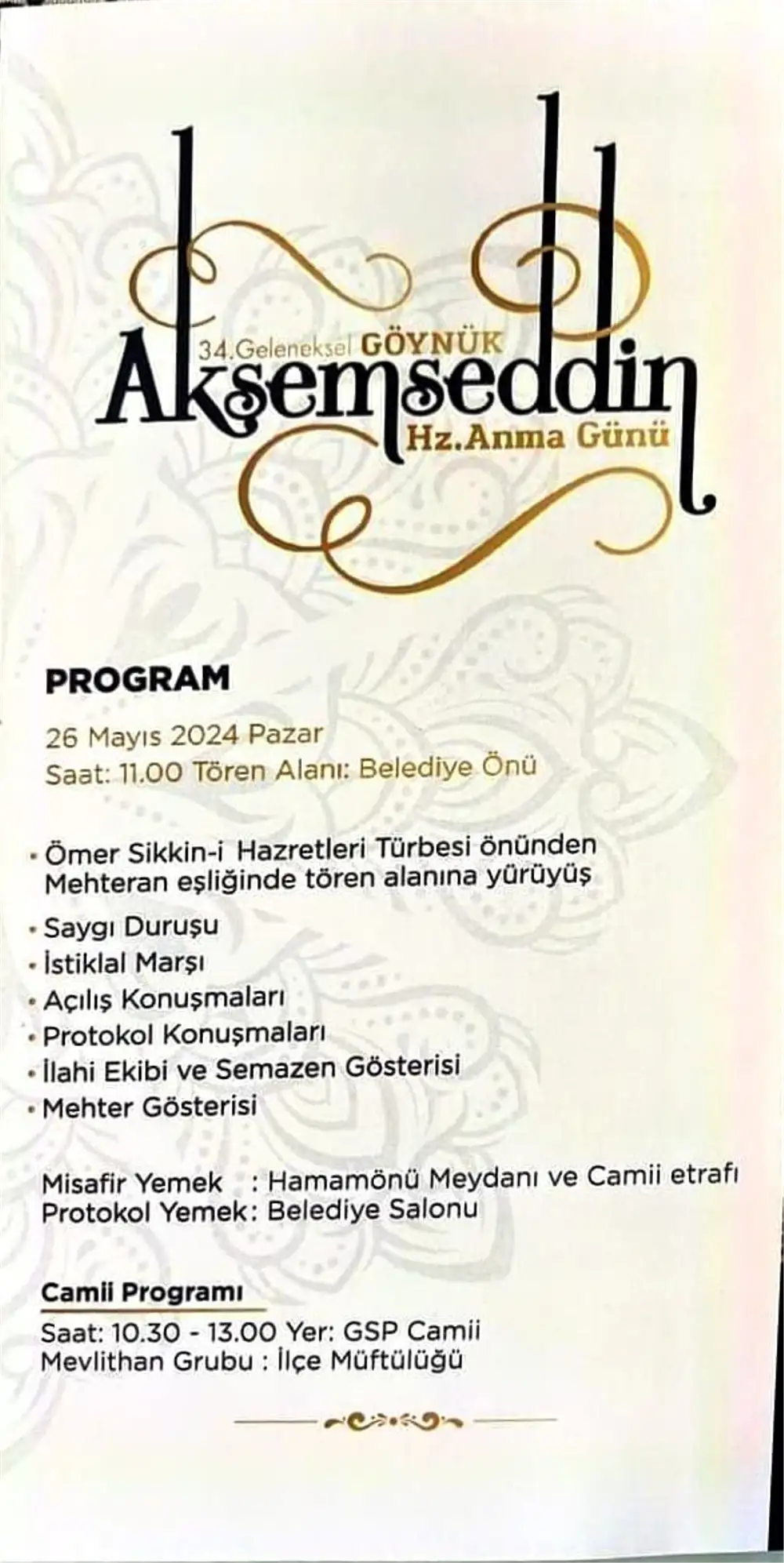 Tören boyunca, katılımcılara pilav ikram edilecek. Bu özel günü birlikte kutlamak için tüm Göynüklüler davetlidir.