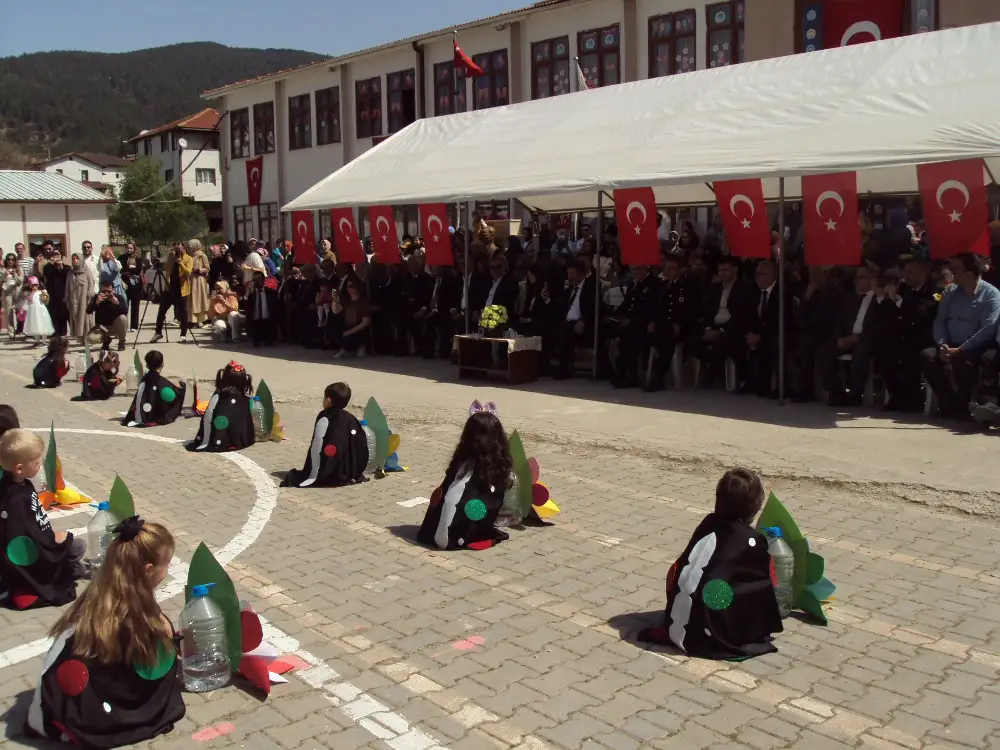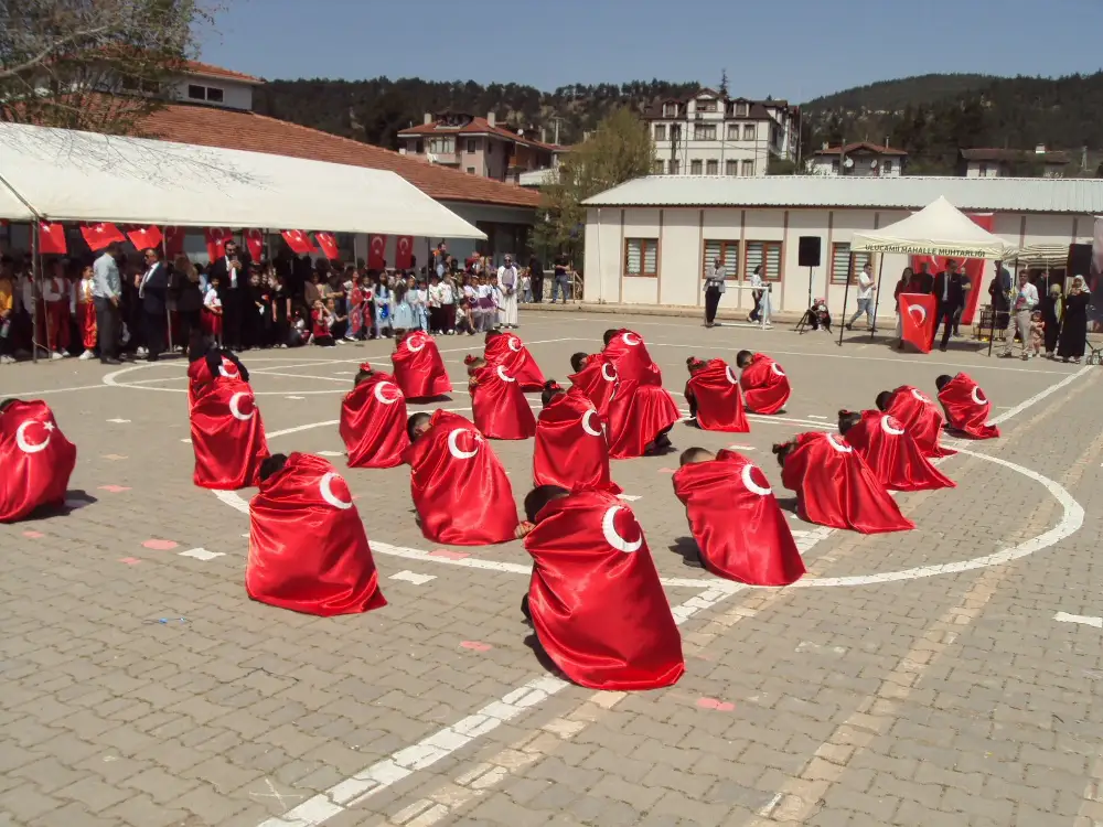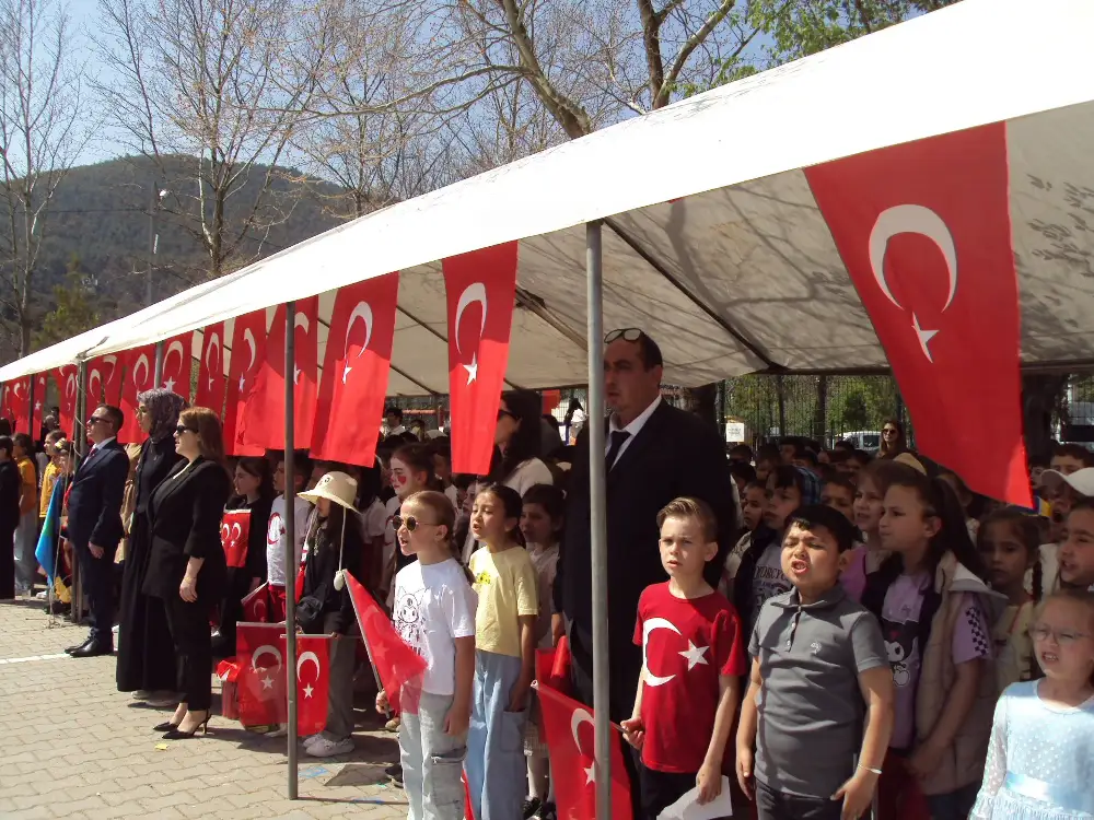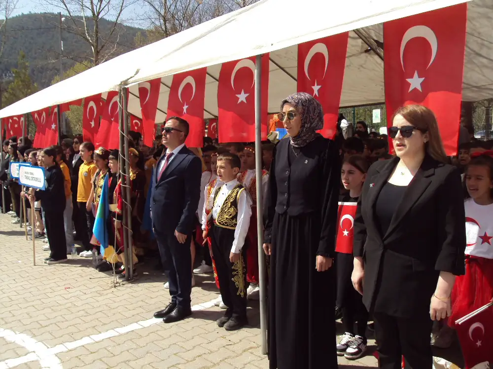 İlçe Milli Eğitim Müdürü Raşit Şahin, günün anlam ve önemini belirten bir konuşma yaptı. Şahin, 23 Nisan'ın Türkiye Cumhuriyeti'nin kuruluşu ve milli egemenlik açısından taşıdığı tarihi değere dikkat çekti. Konuşmasında, başta Cumhuriyetimizin kurucusu Gazi Mustafa Kemal Atatürk olmak üzere tüm şehit ve gazilerimizi rahmet ve minnetle andığını ifade etti.