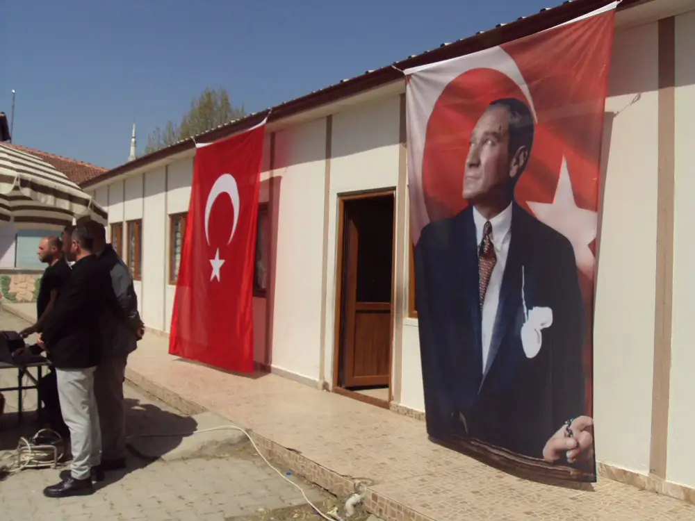 Resmi törenin ardından kutlamalar Atatürk İlkokulu bahçesinde devam etti. Buradaki program da saygı duruşu ve İstiklal Marşı'nın okunmasıyla başladı.