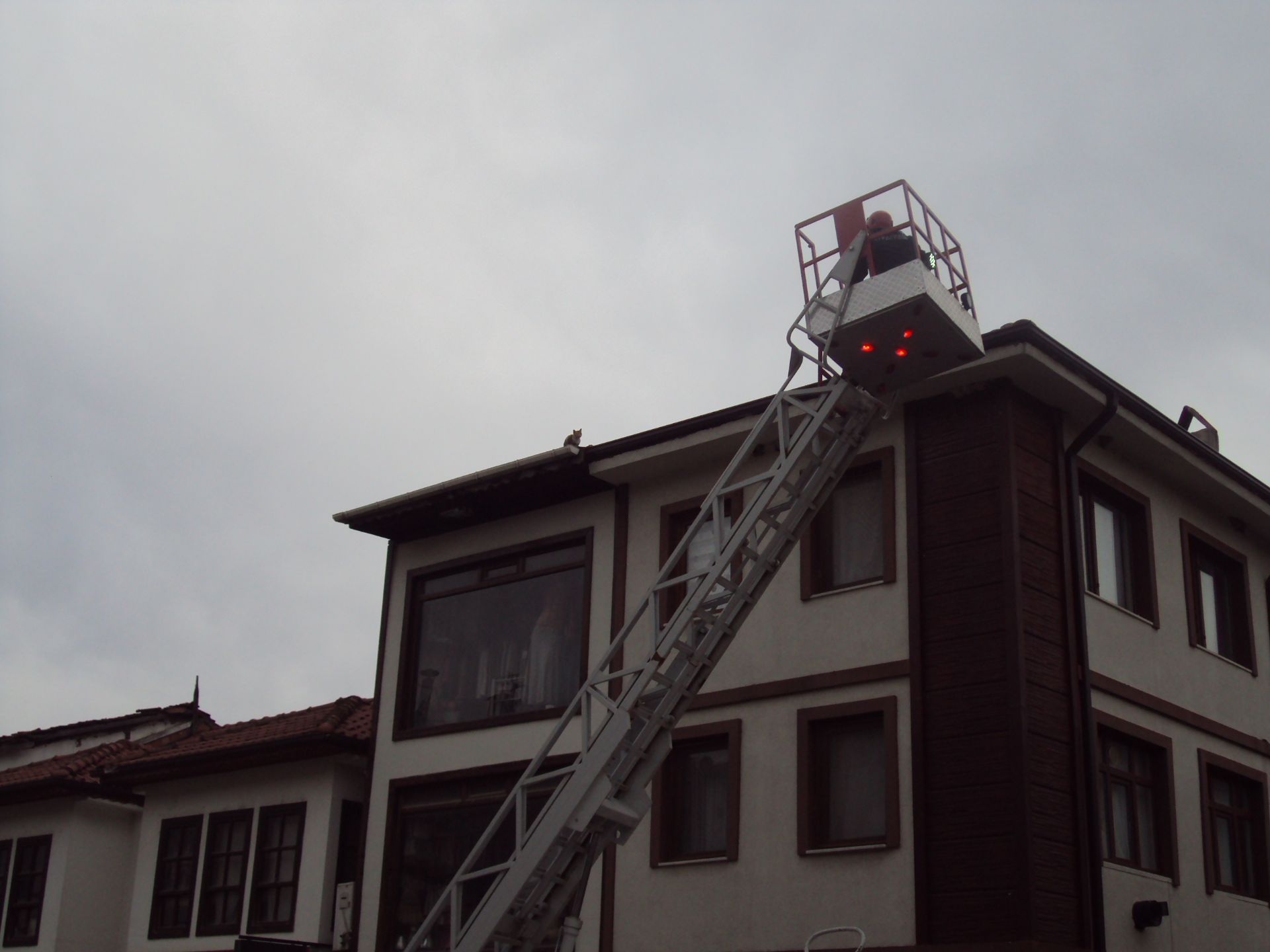 Kısa sürede adrese ulaşan ekipler, merdivenli araç yardımıyla çatıya çıkarak mahsur kalan kediyi bulunduğu yerden güvenli şekilde aldı. Sağlık durumunun iyi olduğu görülen kedi daha sonra bulunduğu çevrede güvenli bir alana bırakıldı.