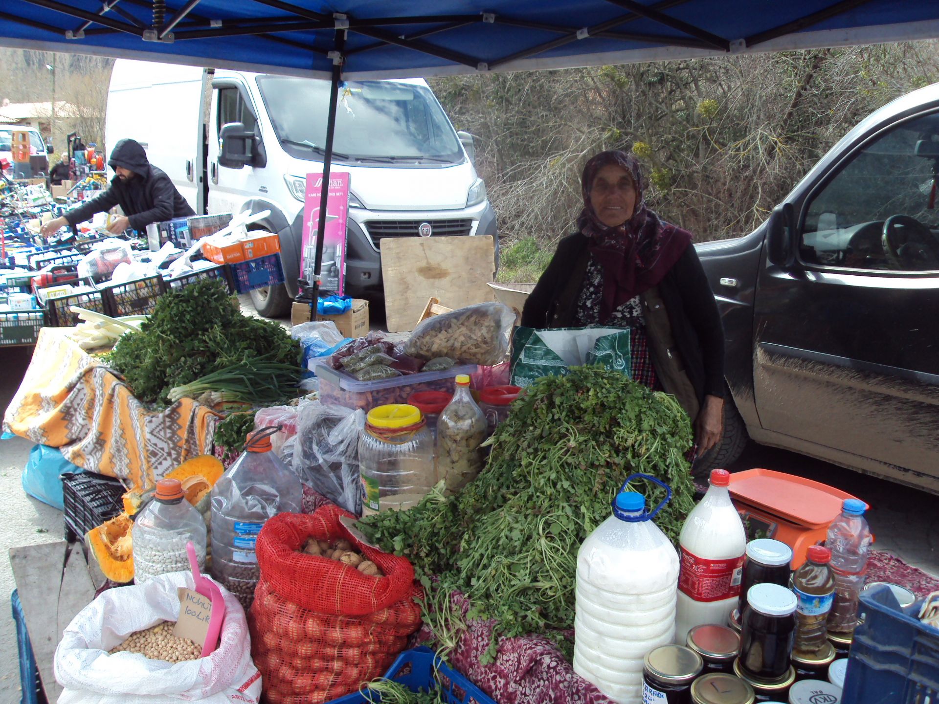 77 yaşındaki Şahinde Alan, 35 yıldır Taraklı pazarında kendi ürettiği ürünleri satarak azmiyle örnek oluyor.